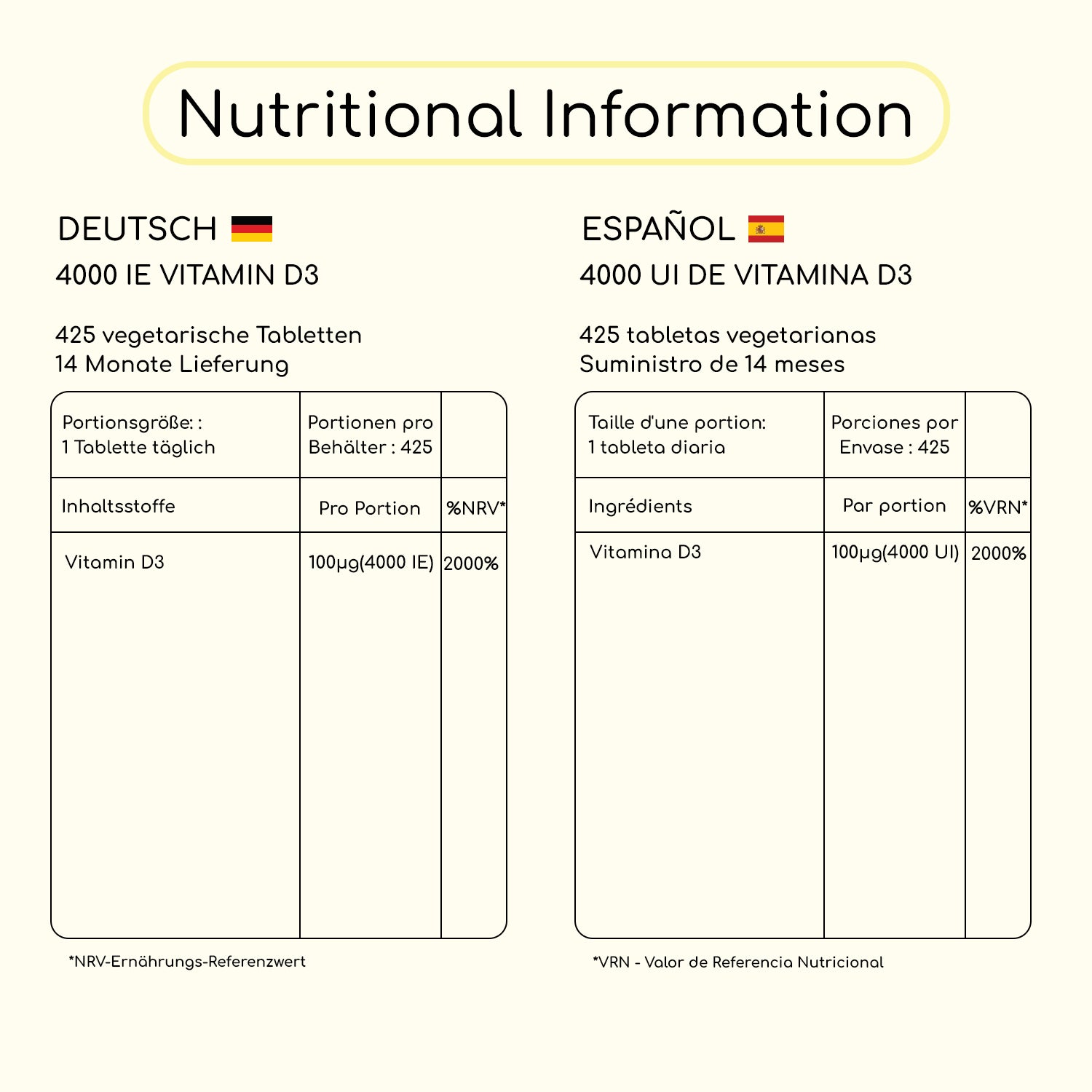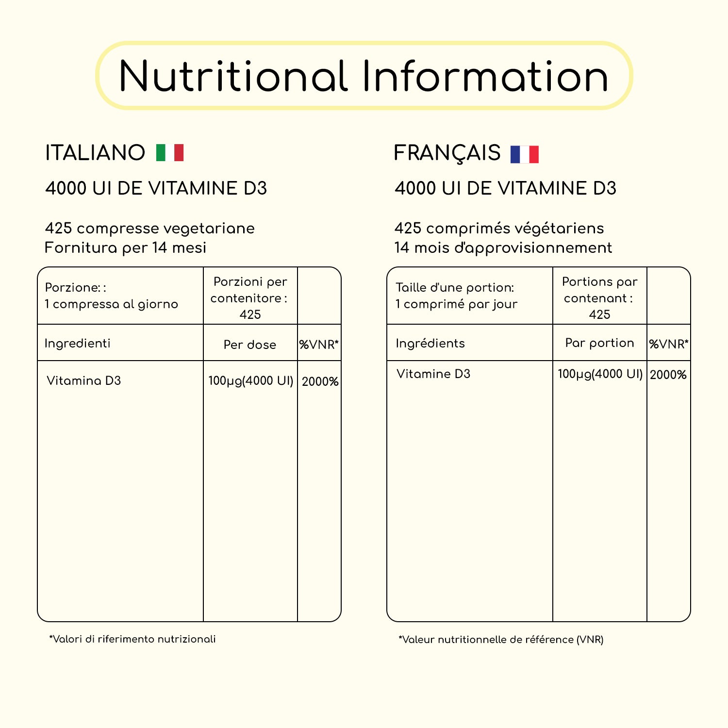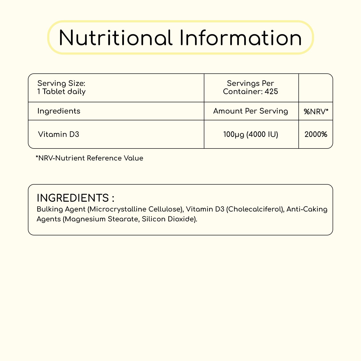 • Vitamin D3 4000 IU 425 Vegeterian Tablets
