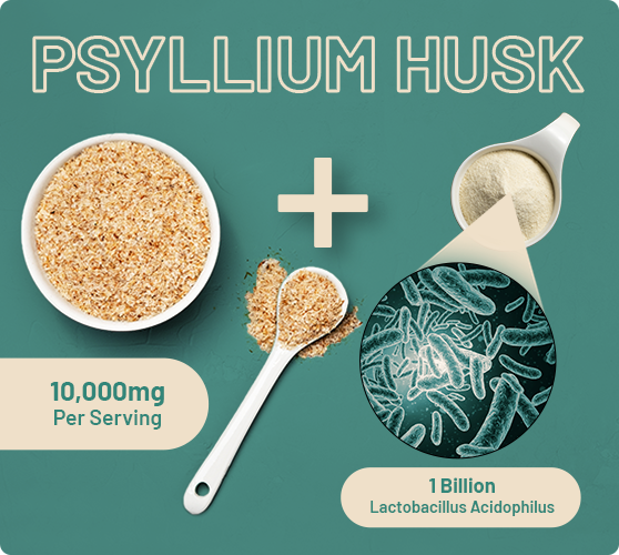 Our psyllium husk with acidophilus supplements brings you the perfect balance of fibre and probiotics so you feel lighter, healthier, and more energised from the inside out. The psyllium husk serves as a natural cleanser, gently supporting regularity, curbing cravings, and keeping blood sugar levels steady. At the same time, Lactobacillus acidophilus replenishes good gut bacteria, reduces bloating, and strengthens your digestive and immune health.