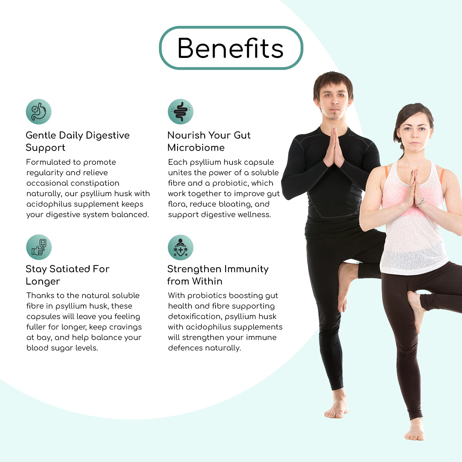 Formulated to promote regularity and relieve occasional constipation naturally, our psyllium husk with acidophilus supplement keeps your digestive system balanced.