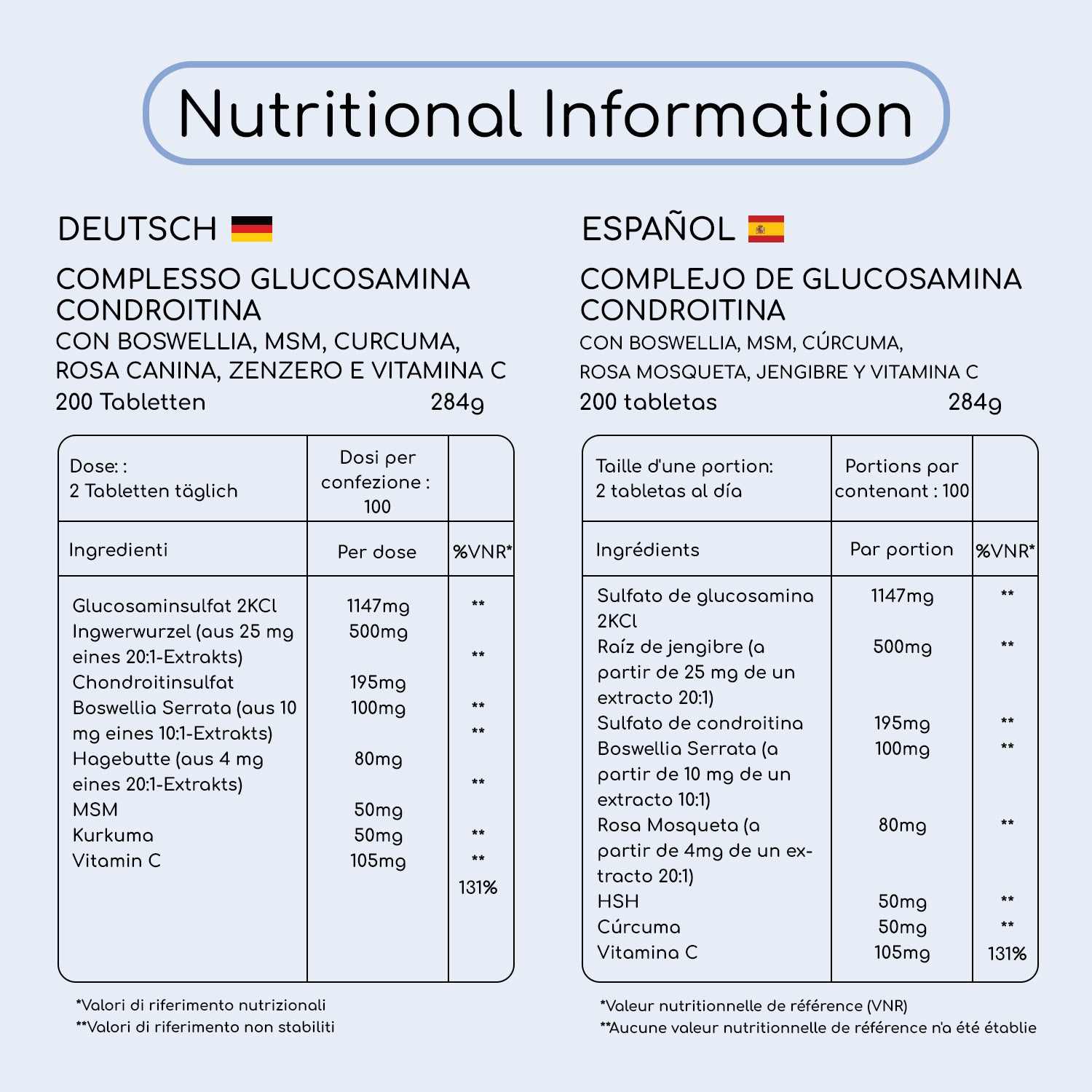 Enriched with a carefully curated blend that includes Vitamin C and other essential nutrients, this glucosamine and chondroitin supplement fortifies your body's defences.