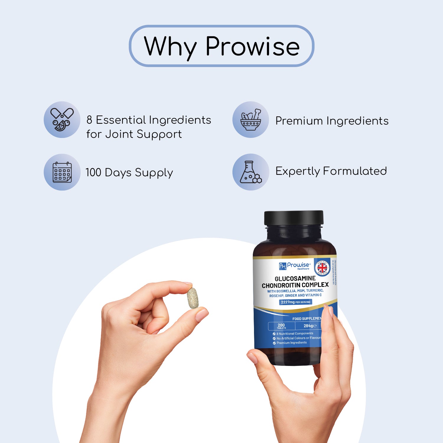 Rich in antioxidants, Prowise's glucosamine and chondroitin supplement combats inflammation, helping you move with ease and comfort.