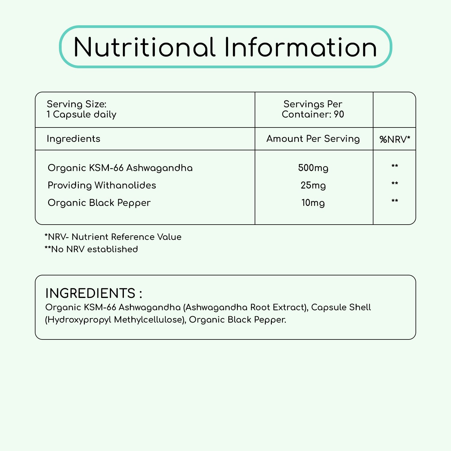 • Ashwagandha KSM66 Capsules 500mg 90 Capsules