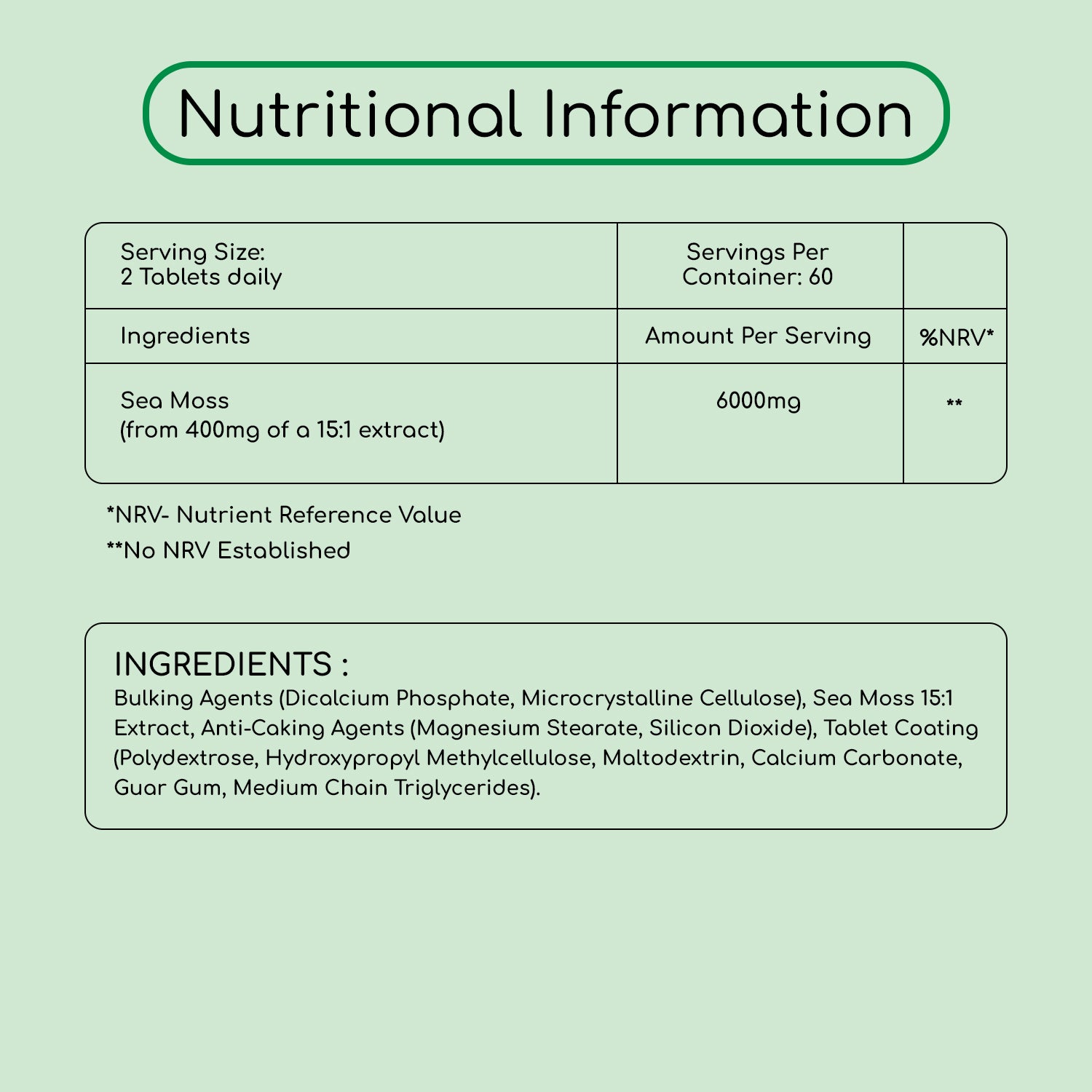 Irish Sea Moss Supplement 6000mg 120 Vegan Tablets