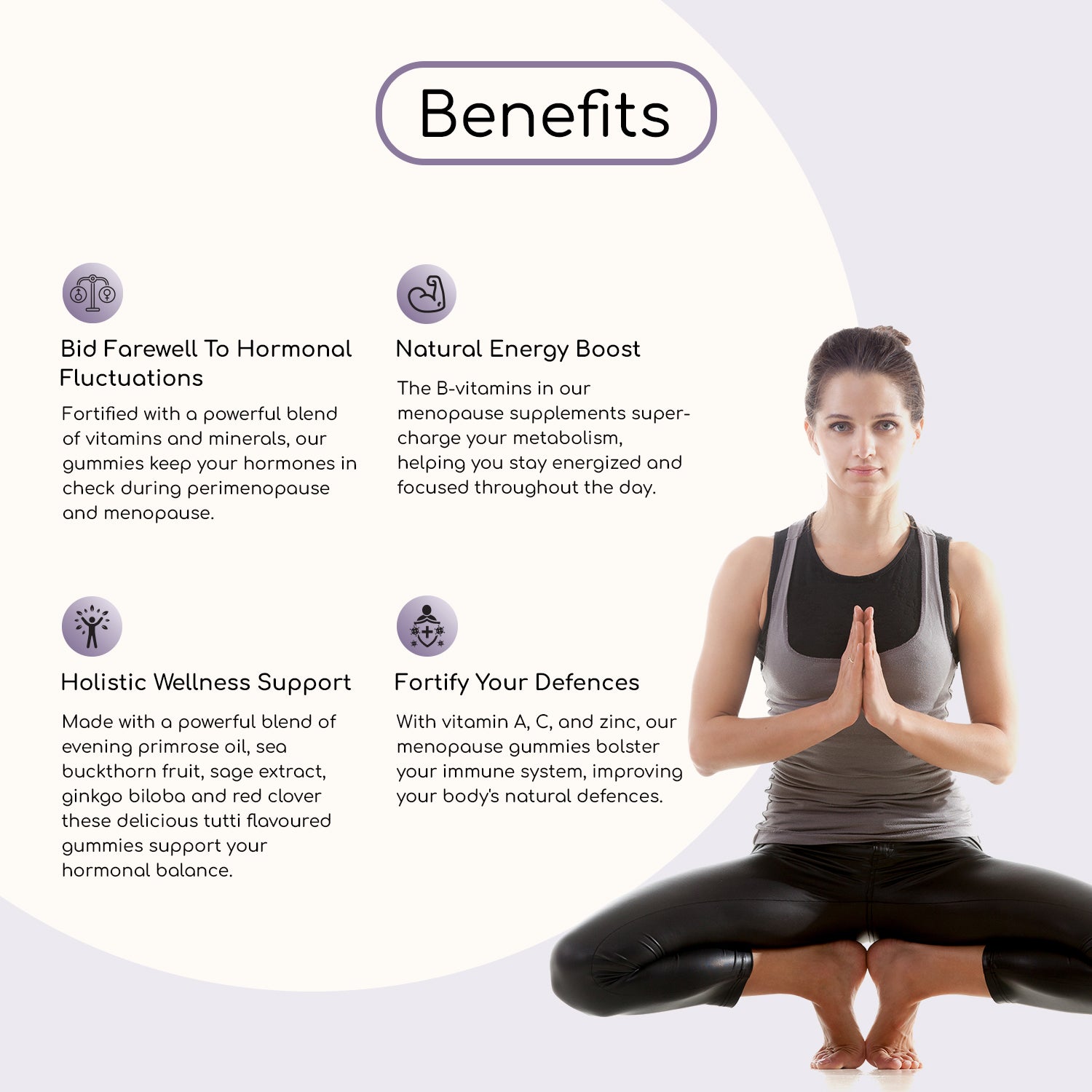 Fortified with a powerful blend of vitamins and minerals, our gummies keep your hormones in check during perimenopause and menopause.