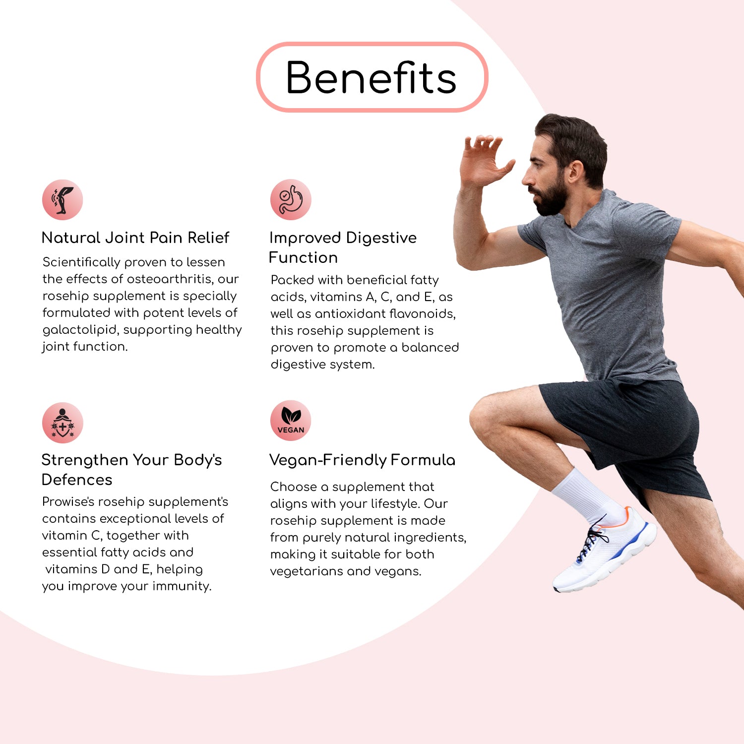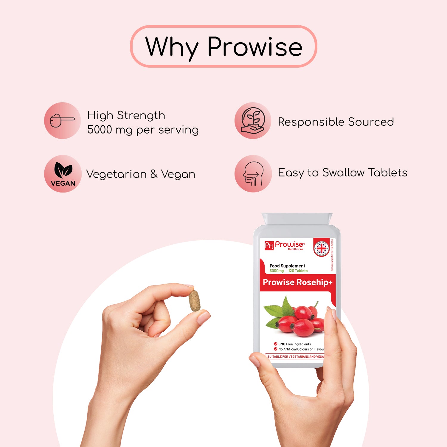 Prowise's rosehip supplement's contains exceptional levels of vitamin C, together with essential fatty acids and vitamins D and E, helping you improve your immunity.