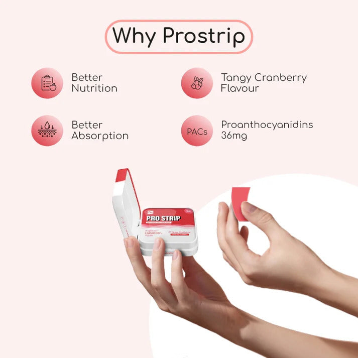 Prowise Cranberry+ Pro Strip uses best-in-class formulation processes and never-used-before Cranberry Urophenol™️ to offer an easy to consume solution for urinary tract health.