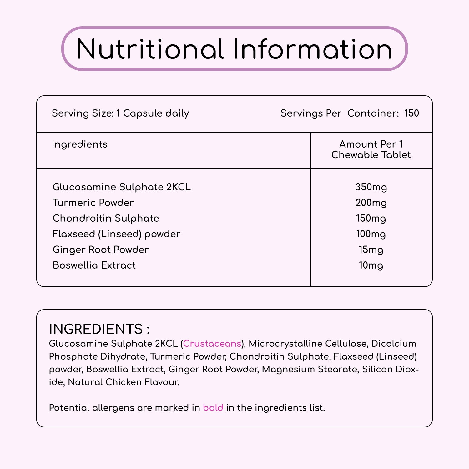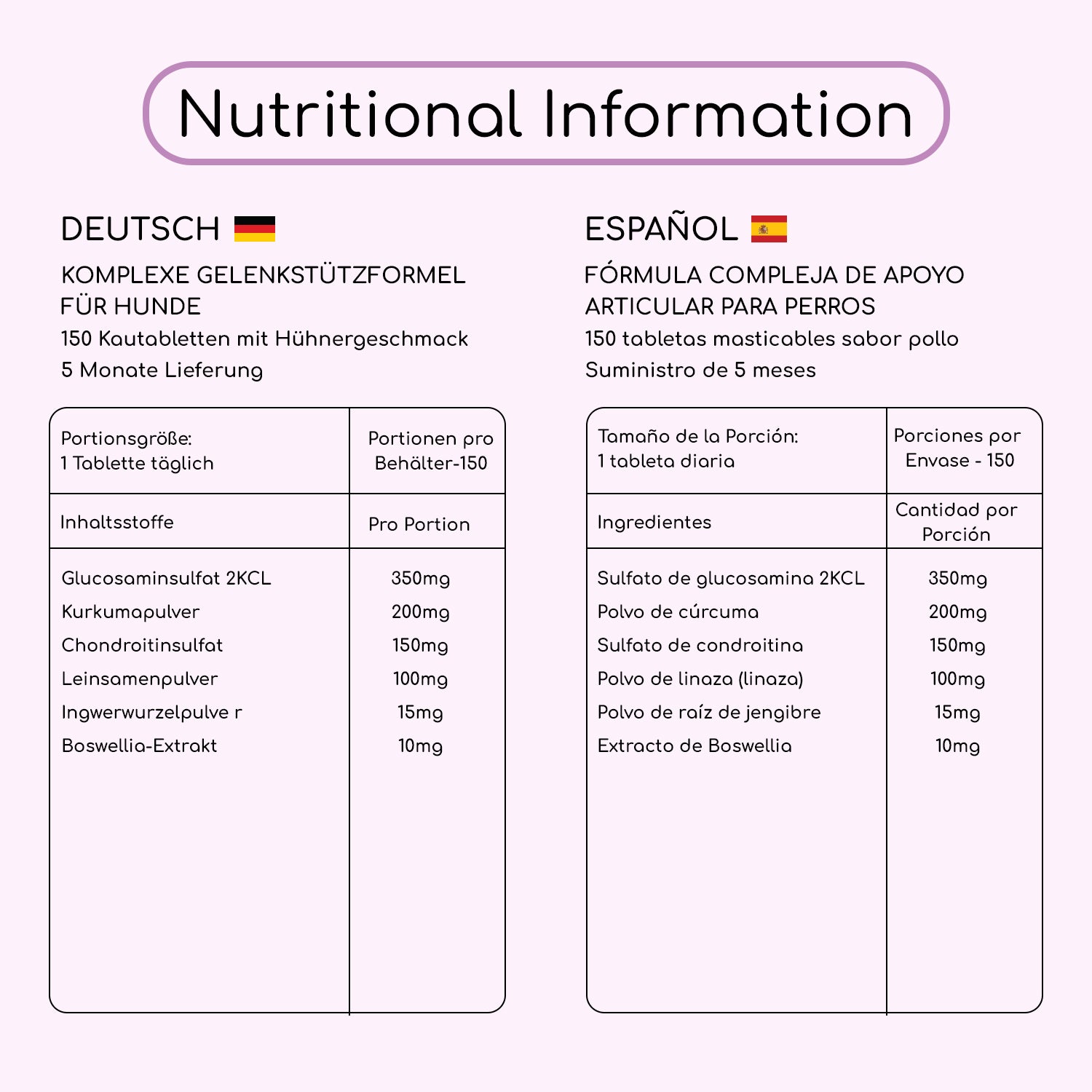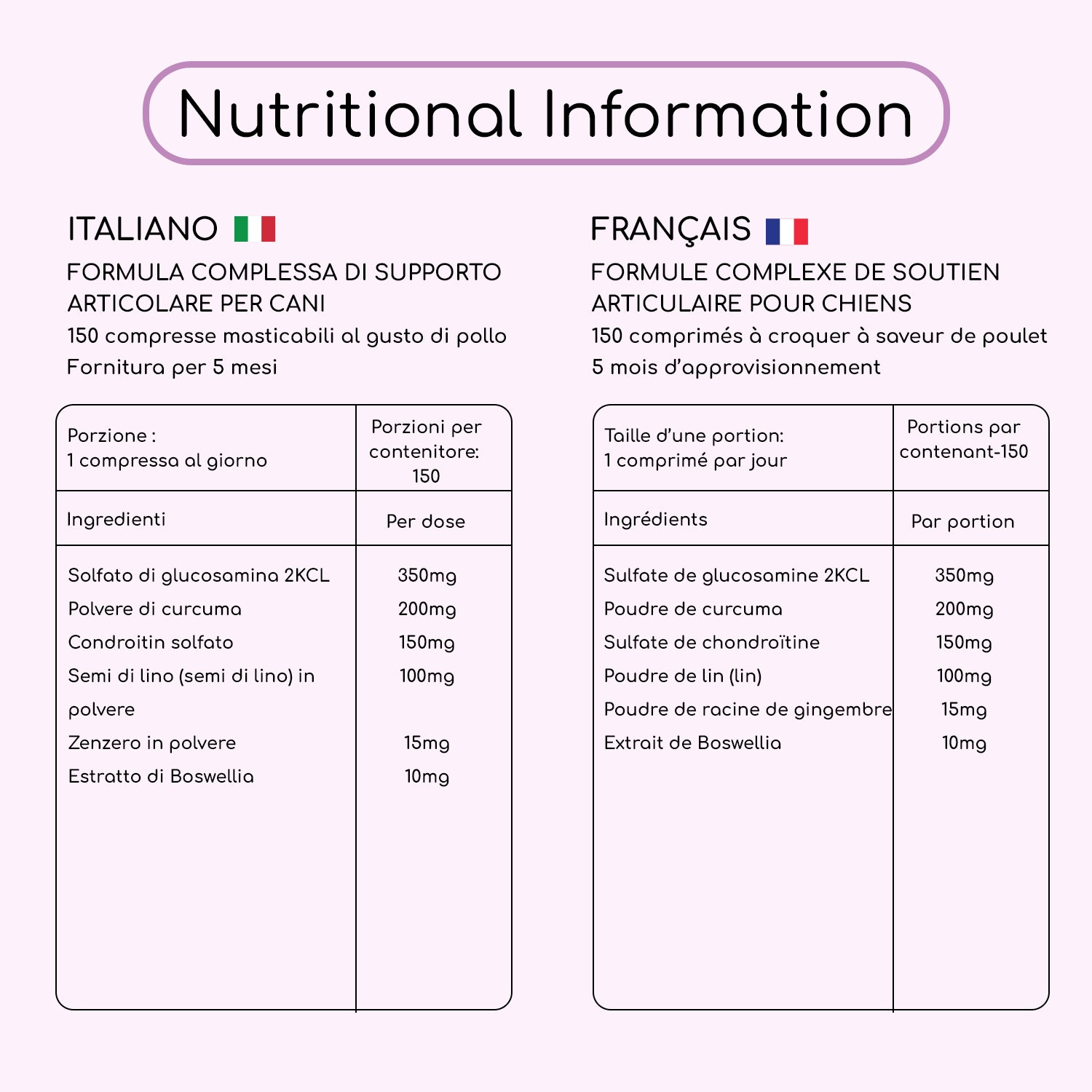 Each of the 150 chicken-flavoured tablets is delicious and easy to munch on, serving as your dog's invitation to better well-being.
