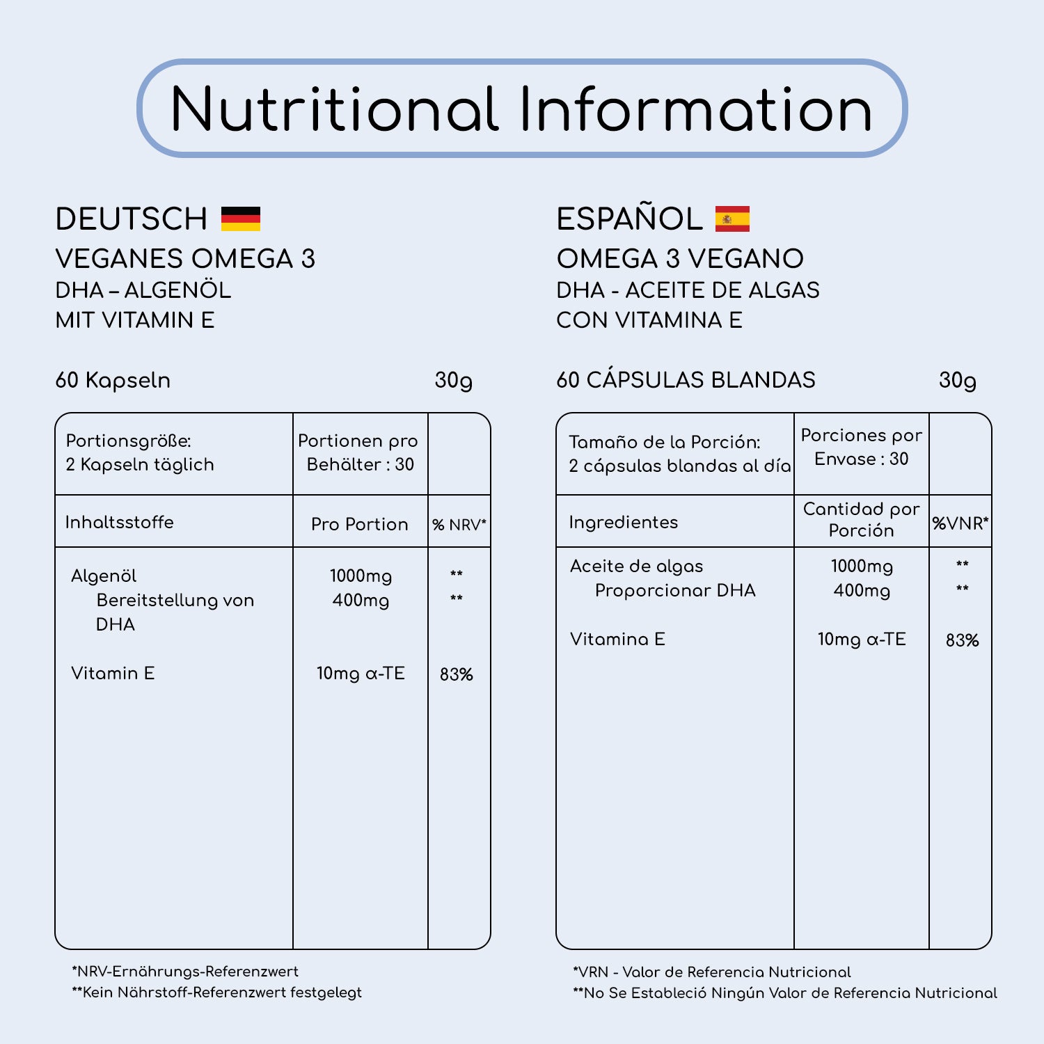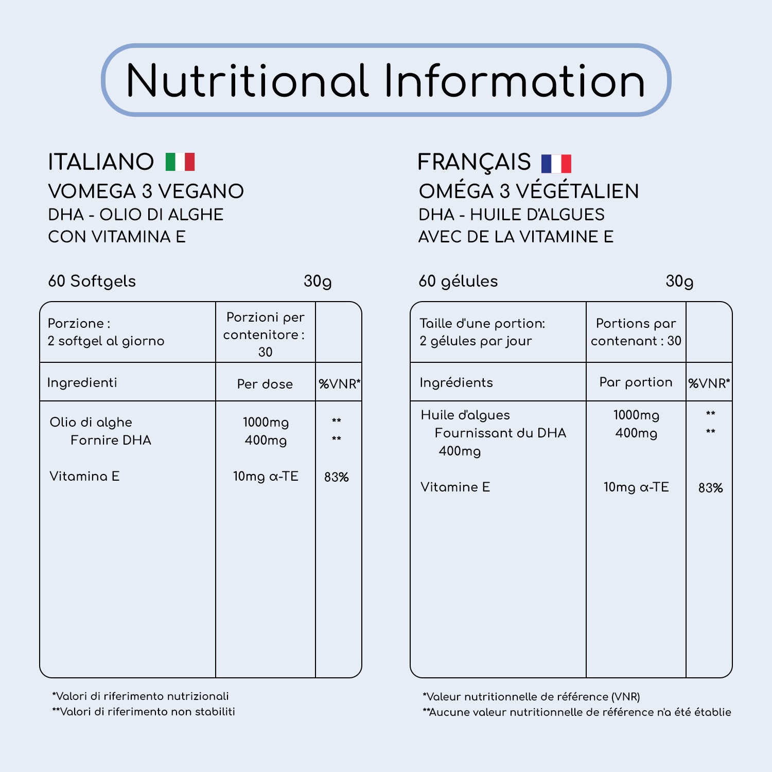 Each supplement contains 400mg of algae-based DHA, a powerhouse essential fatty acid that improves cognitive function and sight. The best part? It's not only vegan and vegetarian-friendly but also free from gluten, fillers, preservatives and GMOs.
