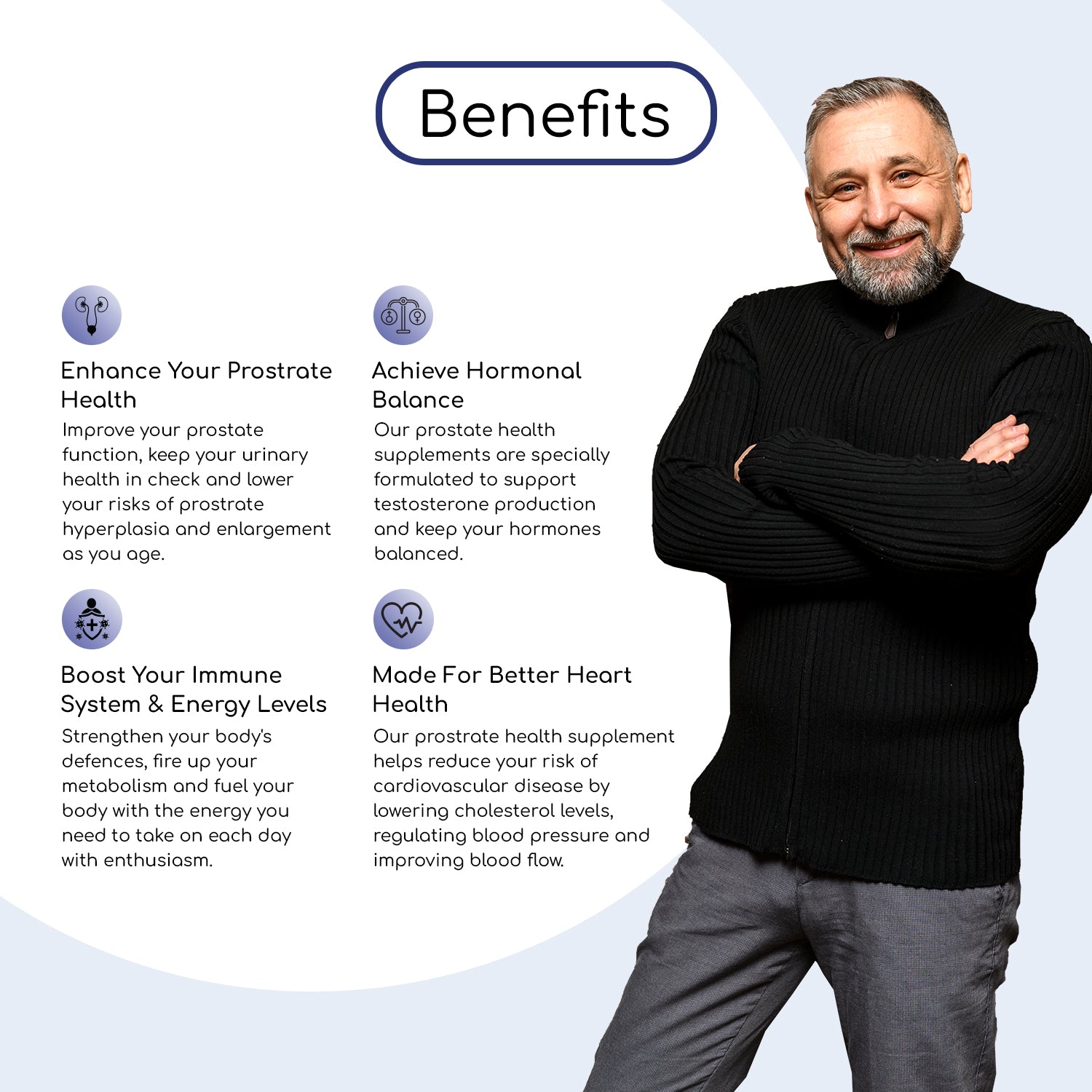 Improve your prostate function, keep your urinary health in check and lower your risks of prostate hyperplasia and enlargement as you age.